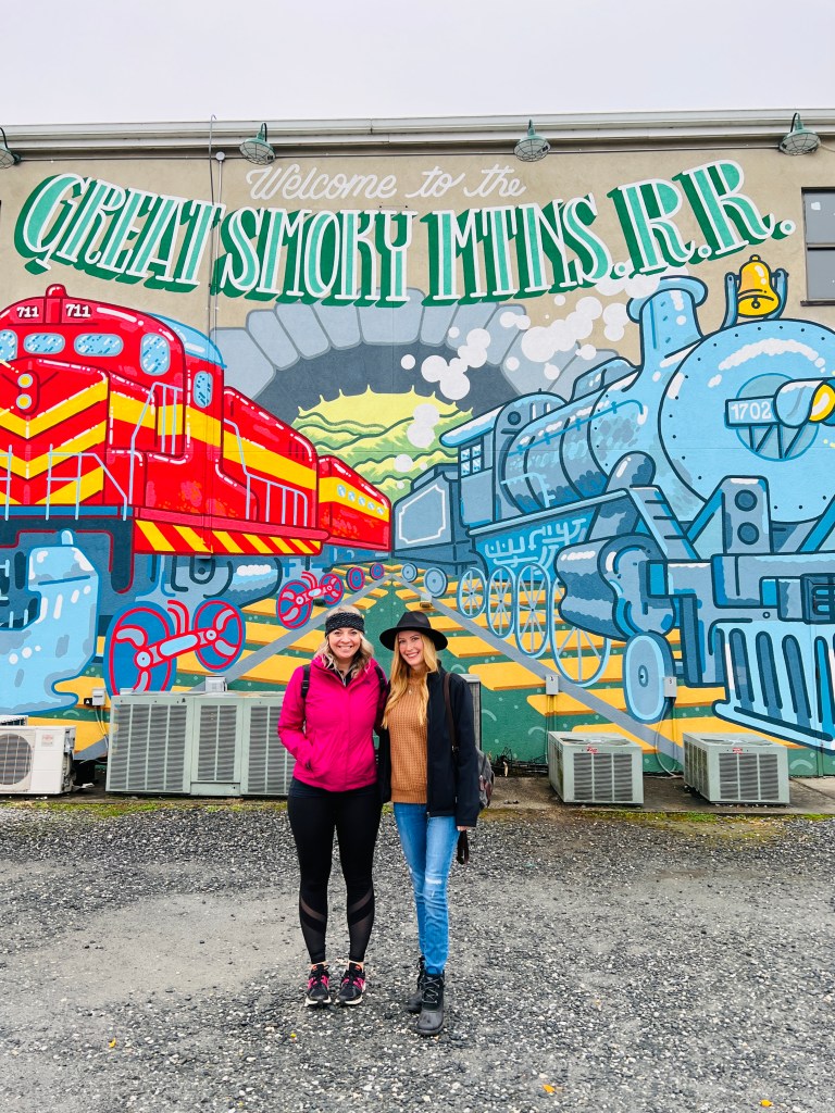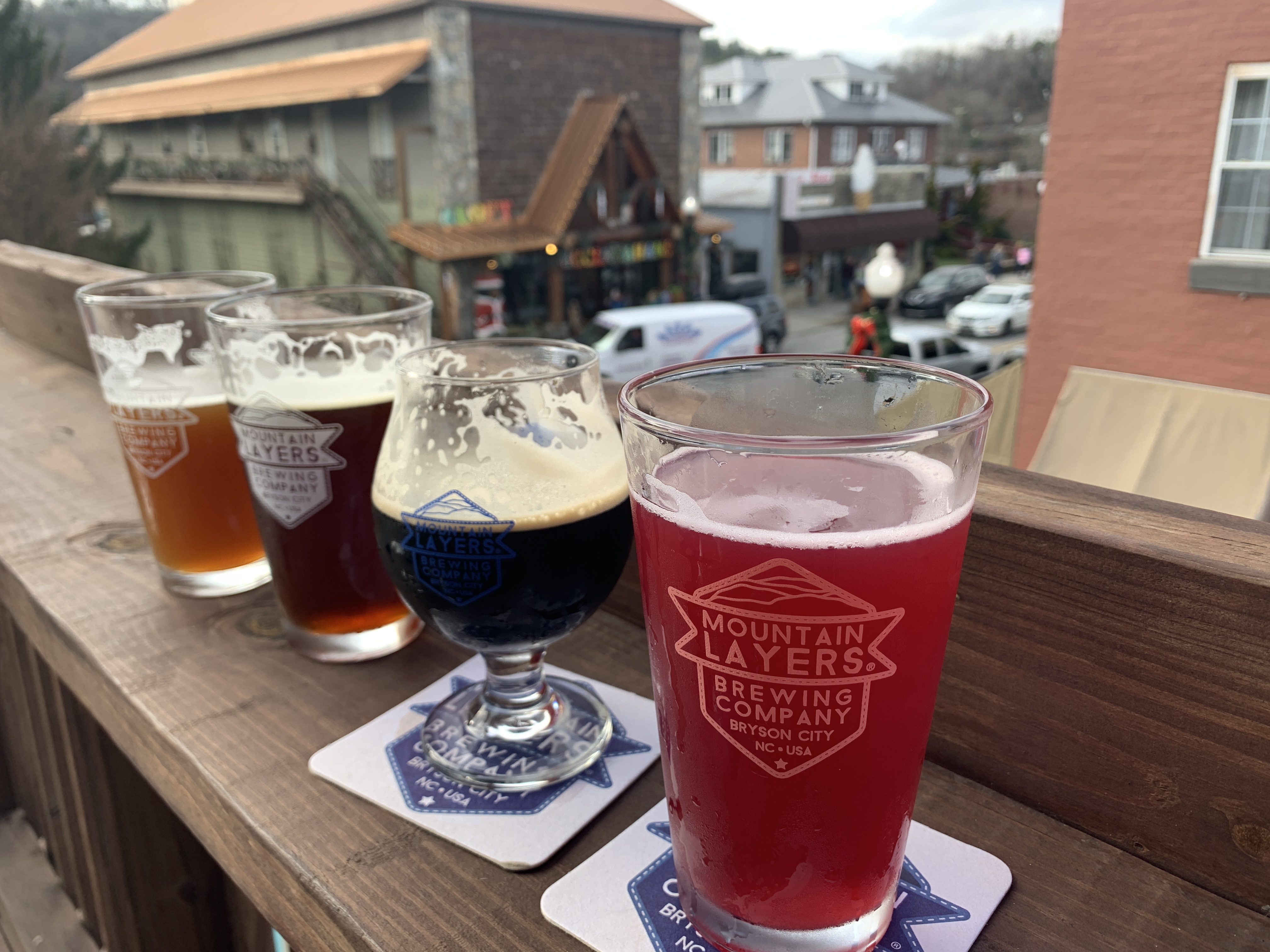 When they returned to the depot in Bryson City, the girls made a quick stop at Mountain Layers Brewing Company. (Nantahala Brewing Company is also in Bryson City, but sadly, the girls didn’t have enough time to visit on this trip.) Mountain Layers is owned by Kim & Mark who vacationed in the Bryson City area for years. When they retired, they moved here permanently and opened the brewery. It’s a two-story building with bars on both levels. The brew house is on site and has a great outside rooftop area with fantastic views of the mountains and downtown. Downstairs is home to the beer garden and local food truck. Molly drank the Honey Just 2 More, a fruit beer with black currant, and Chrissy drank the Nitro Rocket Corner Oatmeal Stout.