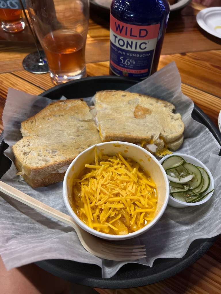 Molly left town the next morning, but Chrissy kept the boozy tour going! She started with the Food Truck Wars taking place that morning and moved to Community Brew House. If you are a home brewer, this is the place for you – from supplies to classes, you can get all you need to take your brew game to the next level. This brewery offers small, artisan batches to foster new ingredients and new ideas. Chrissy enjoyed a pumpkin sour here. While they don’t have a kitchen, you can bring outside food here.