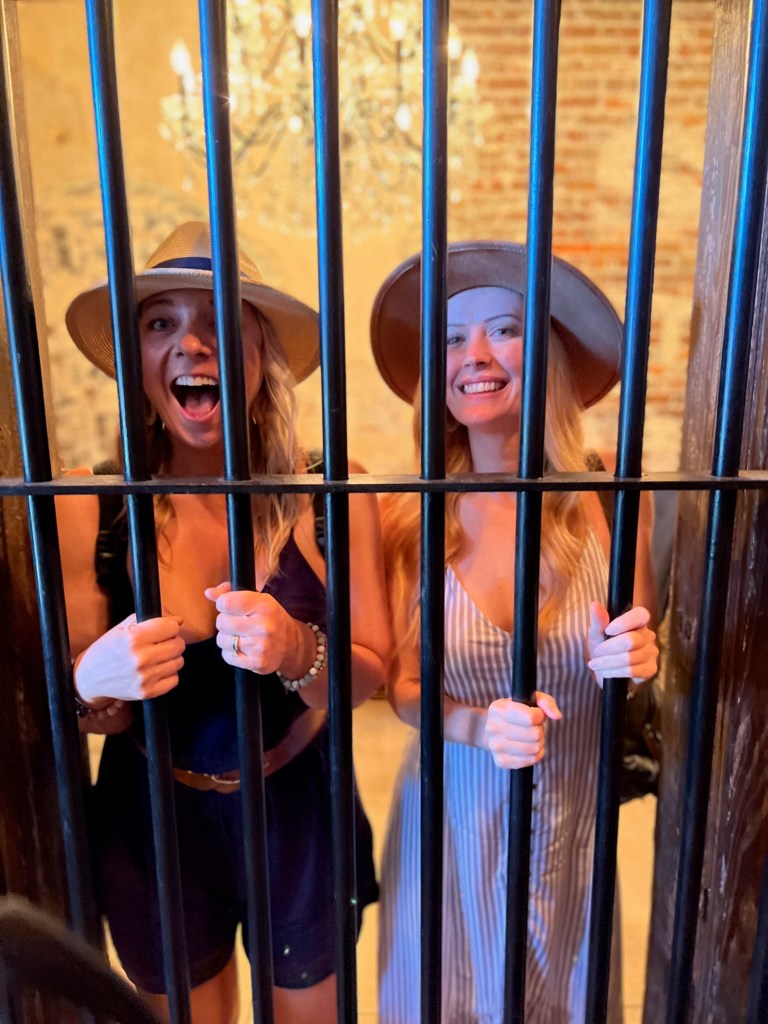 For lunch, the blondes made reservations for the The Old Jailhouse. Formerly a jail, the building still has the original prison cell block door and prisoner ledger! The craft cocktails were delicious – Chrissy had a rum and ginger and Molly had the fall specialty drink, Witches Trial – gin, lime juice, Cardamaro, Cherry Heering, Peychaud’s Bitters, House Serrano Chile & Fennel Seed Syrup.