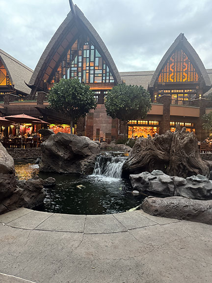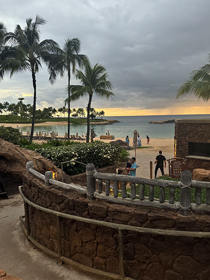Traveling to the Southwest corner of Oahu, you’ll find Disney’s Aulani Resort. You can visit the resort even if you aren’t a guest, so Molly had small bites and cocktails at the Olelo Lounge while listening to live music. Molly drank The Old Koa Canoe (a version of an old fashioned) and Rainer had Green Sands, which was a mezcal based drink.