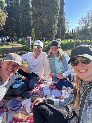 One of the best experiences the blondes had was renting e-bikes and exploring the Appian Way. Chrissy packed a picnic lunch for the group, and they took off from an e-bike rental store near Circus Maximus. Beware – there are no bike lanes, so navigating the traffic can be a little treacherous. Over the course of the ride, they stopped at: