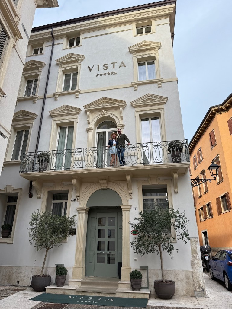 Molly checked into Vista Verona, a luxury boutique hotel located in the heart of the city. The property blends modern Italian design with ancient Roman history, as parts of the building sit directly above archaeological remains. The hotel also features one of Verona’s standout rooftop bars, offering sweeping views of the historic skyline…which the Boozy Blondes took advantage of first full day in the city!
