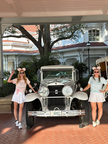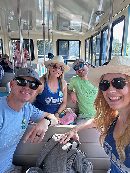 From here, the Boozy Blondes and Bros took the “highway in the sky” to the Contemporary Resort. Molly introduces the Contemporary, one of two original Disney resorts! The group squeezed into the bar at Steakhouse 71, which is always a favorite. Although it was crowded, the group still enjoyed their drinks (a round of tequila sodas) and split the Stack Burger – another favorite! And bonus – the bartenders surprised the group with Champagne in honor of the birthday twins, Phil and Molly! (Pro tip – if you’re celebrating, ask for a pin! You’ll sometimes get to experience a little extra Disney magic – like complimentary Champagne.)