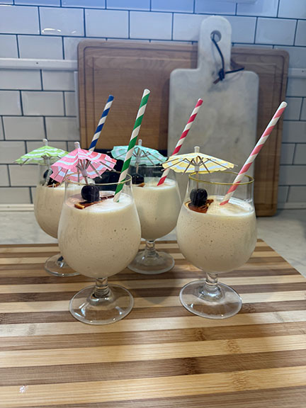 The DOE is a Dole Whip cocktail! In honor of the favorite Disney treat, Dole Whip, the gang is sucking up this delicious concoction as they recap their pub crawl journey. Molly blended Publix brand Banana Pineapple Lactose Free Ice Cream, pineapple juice and spiced rum to make the drinks.