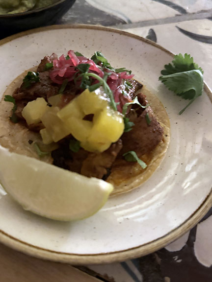 La Punta Expendio de Agave | Molly and Rainer found this great tequila bar just around the corner from their Air B&B. Walls inside are filled with tequilas up to the ceiling! They have a menus of specialty drinks, and Molly started with a classic Paloma and then the El Grtio which was mezcal, sage, lime and agave. Rainer had the best time choosing tequilas to drink neat. The food menu is small, but with a small menu, you know they really nail the items. They had street tacos, and fun fact, it was on Thanksgiving, so definitely the most unique Thanksgiving dinner they have shared – Thanksgiving at a Mexican bar in Italy.