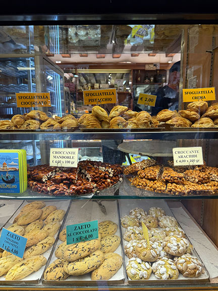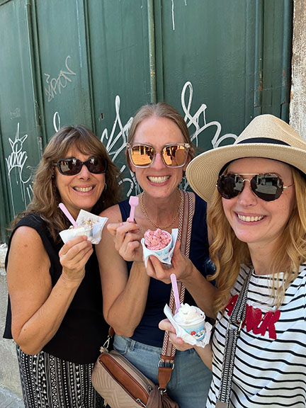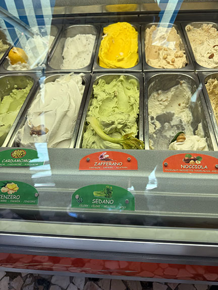 One standout moment for the Blondes was their first cicchetti stop, featuring a topping of tomato confit…slow-roasted tomatoes and garlic in olive oil. It was so good it inspired Chrissy to recreate homemade versions as Christmas gifts back home. Another great stop was for gelato at the conclusion of the tour. Everywhere you look in Venice, you’ll find gelato shops showcasing their variety of flavors towering high. But that’s not where to go. Find a smaller shop off the beaten path. You’ll find better ingredients and flavors!