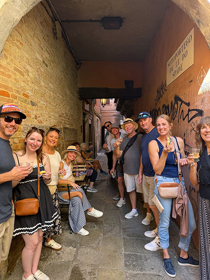Those 15 tastings are spread across multiple stops, meaning guests sample a variety of cicchetti, pours, and bites without ever feeling rushed—or stuffed too early.